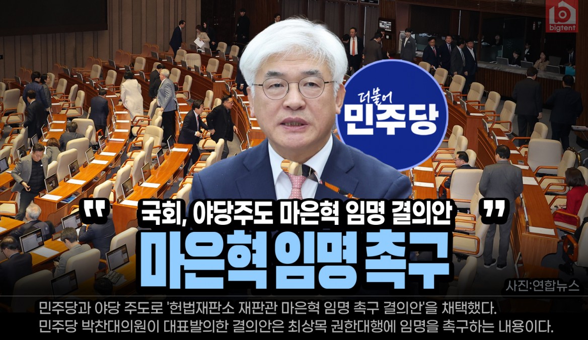 국회는 14일 본회의에서 민주당과 야당 주도로 '헌법재판소 재판관 마은혁 임명 촉구 결의안'을 채택했다.