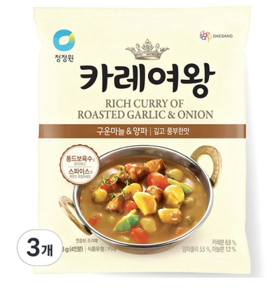 [쿠팡]카레여왕 구운마늘 앤 양파, 108g, 3개 5,210원/와우무배