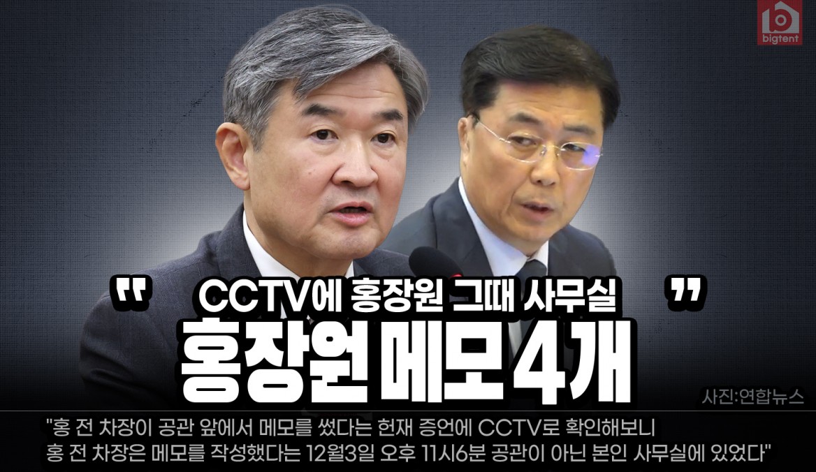 "홍 전 차장이 공관 앞에서 메모를 썼다는 헌재 증언에 CCTV로 확인해보니 홍 전 차장은 메모를 작성했다는 12월3일 오후 11시6분께 공관이 아닌 청사에 있는 본인 사무실에 있었다"